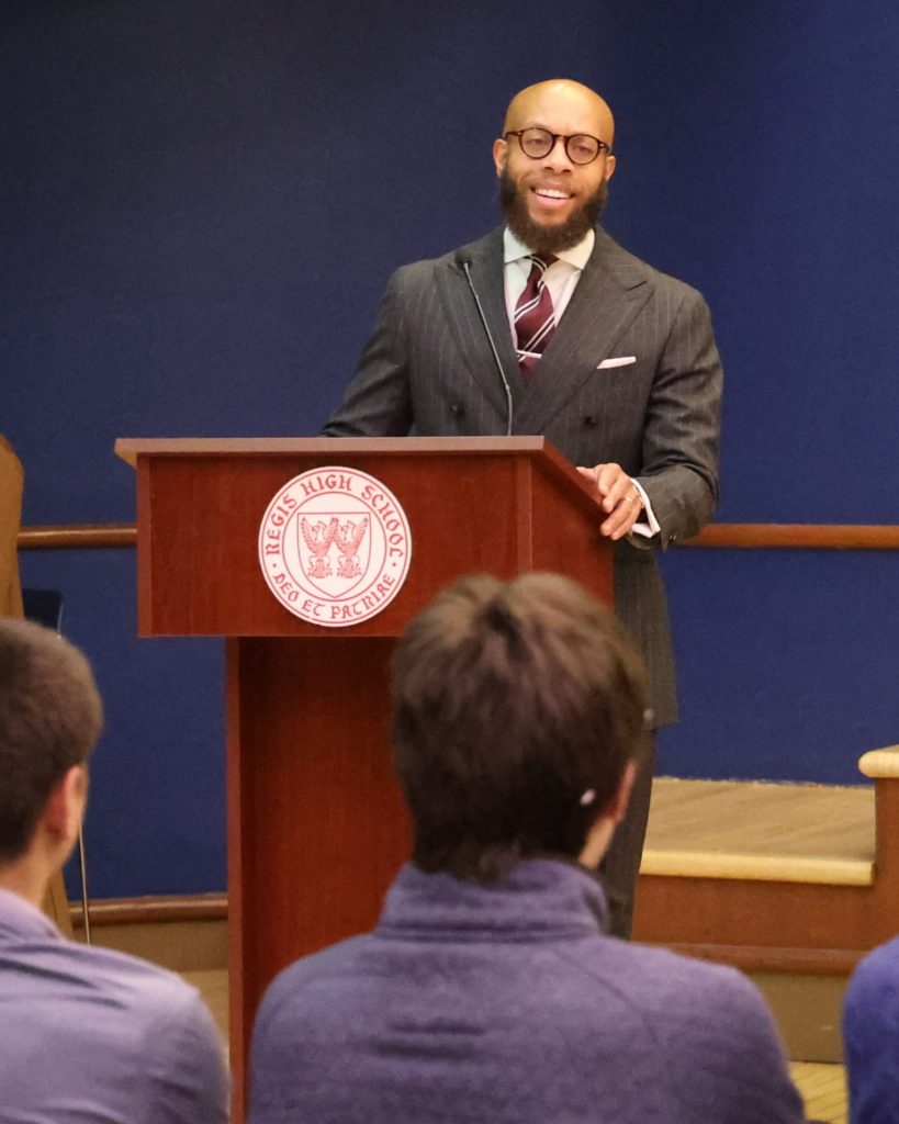 "I graduated from Regis in the spring of 2003, and what happened to me inside this building set the direction for everything that came after — even when I couldn’t see it at the time" said Toussaint. "The world will hand you walls. But walls are also invitations — invitations to connect, to create, to transform. Your job, our job, the job Regis has been preparing you for since the day you walked in through the front door, is to build bridges — bridges across differences, across systems, and across the gaps that threaten to divide us all."